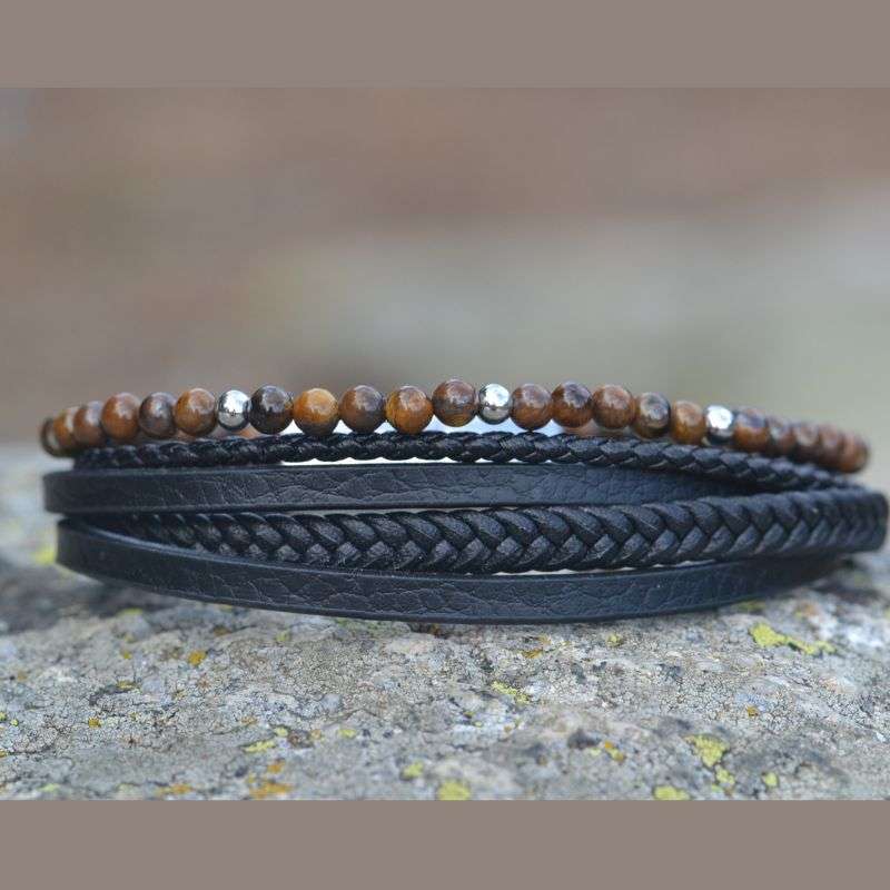 Les amateurs de style bohème ou vintage apprécieront les bracelets en bois en cuir brut ou en pierres naturelles aux tons chauds. L’association d’un bracelet en pierre de lave ou en jaspe rouge avec un bracelet en cuir souple est parfaite pour un effet authentique et naturel.
