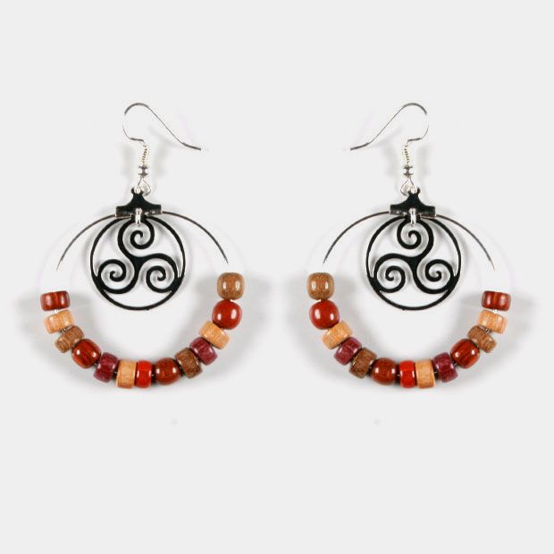 - L’association du bois d’essences multicolore et du filigrane couleur argenté finement ciselé symbolisant le triskel confère aux boucles d’oreilles une véritable impression de légèreté et de douceur.