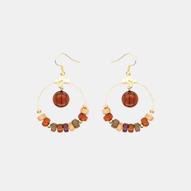 Boucles d’oreilles métal dorée et bois multicolore