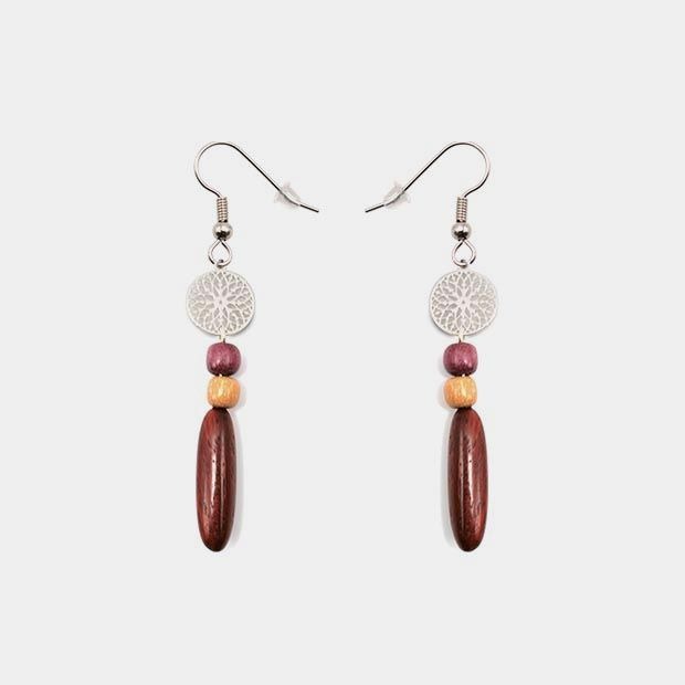 Boucles d’oreilles filigrane et bois multicolore motif rosace
