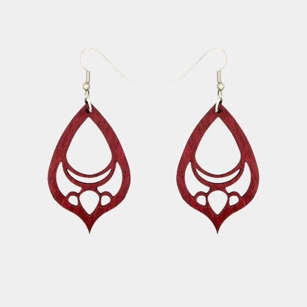 Boucle d’oreille tribal en bois d’amarante sculpté au laser