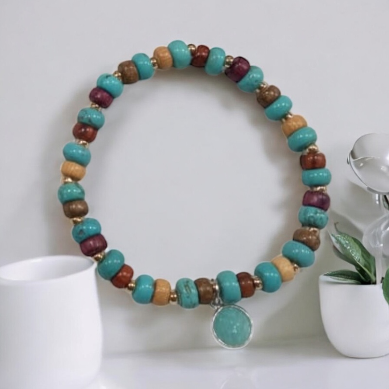 Bracelet turquoise bois multicolore – Laury