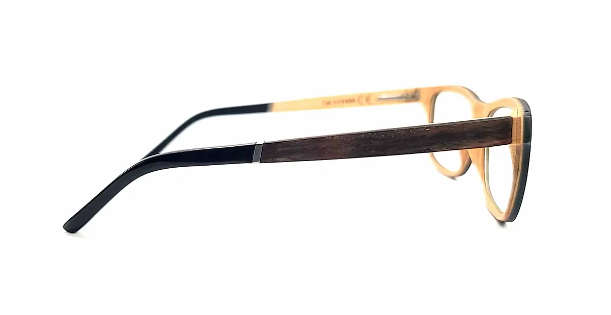 Les lunettes Andros se démarquent par leur contraste de couleurs subtil. Le bois de Noyer, d’une teinte sombre et riche, crée une monture à la fois solide et sophistiquée. L’intérieur de la lunette, quant à lui, présente une couleur plus claire qui ajoute une touche de douceur et de luminosité à l’ensemble.