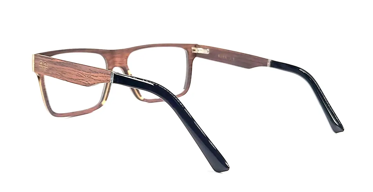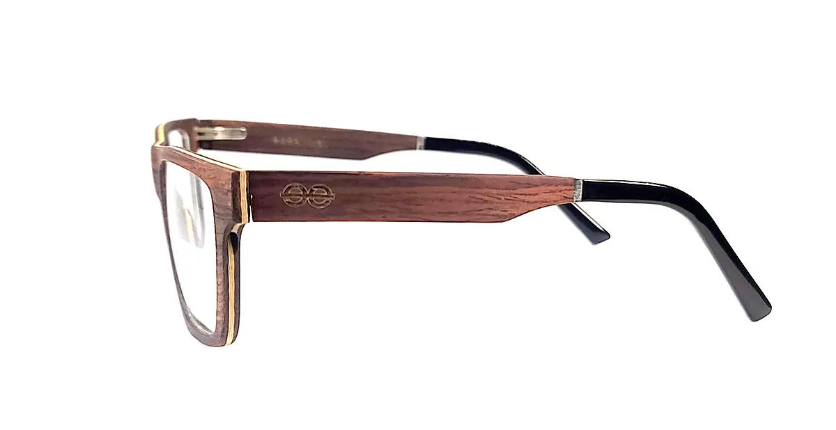 Le bois de palissandre, avec sa teinte brun rougeâtre caractéristique, ajoute une grande dose d’élégance et de sophistication à ces lunettes. Chaque paire de Naxos est unique, grâce aux variations naturelles du bois, ce qui en fait un choix remarquable.