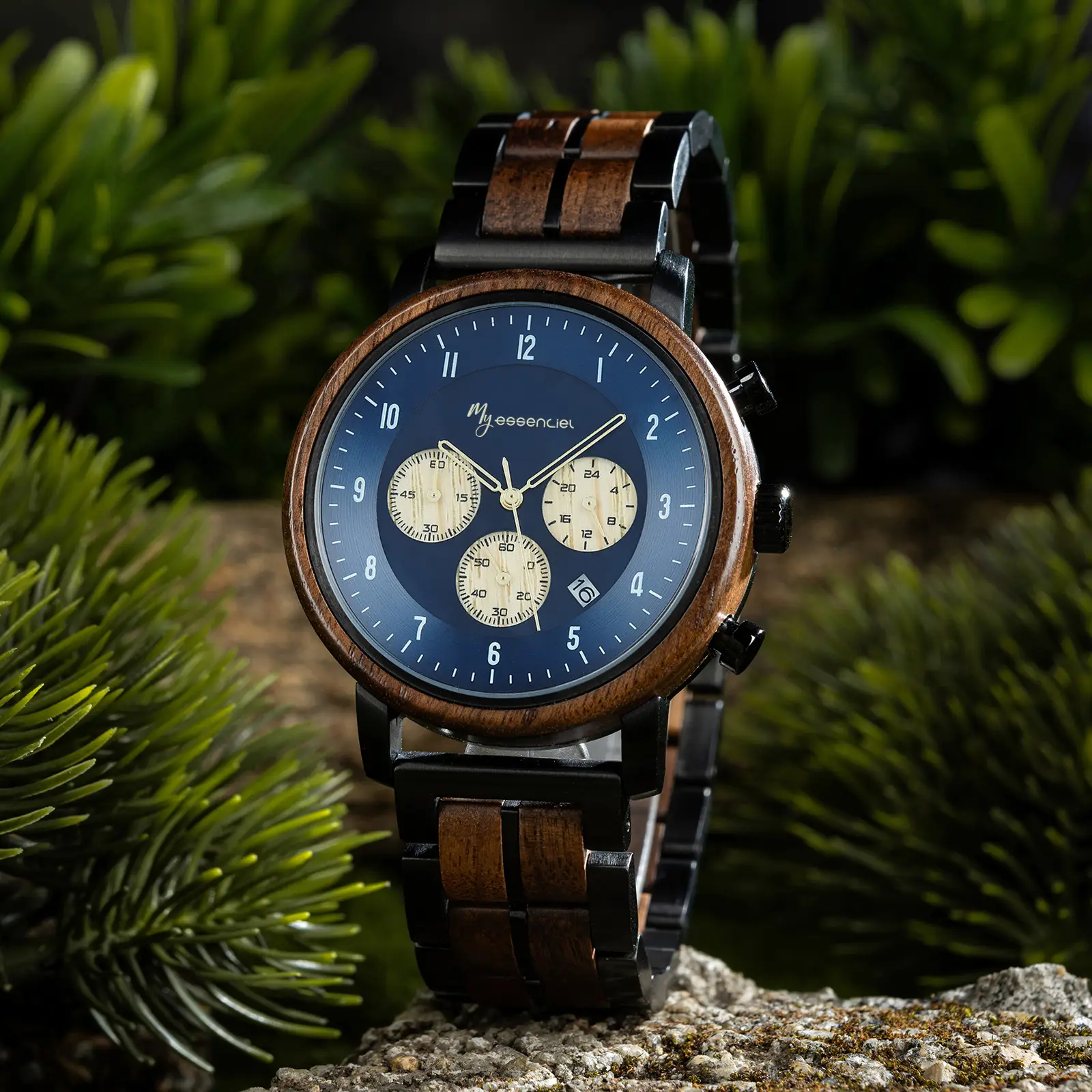 Inspirée par les profondeurs marines et la chaleur du bois, la montre chronographe bois bleue homme Nomadis incarne l’alliance parfaite entre nature brute et technologie horlogère de précision. Elle s’adresse aux hommes qui recherchent une montre au style affirmé, avec un design contemporain, un cadran riche en contraste et un mouvement japonais fiable. Chaque détail a été pensé pour offrir un bijou aussi fonctionnel qu’élégant, entièrement façonné à la main avec soin.